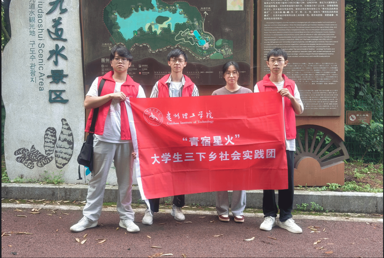 2025年7月19日至24日,贵州理工学院资源与环境工程学院联合食品药品制造工程学院组建的“青宿星火”大学生“三下乡”社会实践团,在覃引老师带领下奔赴贵州省遵义市正安县桴?镇。实践团紧扣“村宿发展与文旅融合”主题,通过实地走访村宿经营场所、开展专题座谈交流等方式深入调研业态现状,同时借助发放防灾减灾宣传册、组织安全知识宣讲等形式为乡村景区提供切实有效的安全服务。此外,实践团还探访正安吉他文化馆,了解当地吉他业发展,以青春实践探寻“村宿+文旅”融合发展的路径。