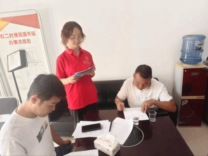 随后,实践团队深入右二村的街头巷尾开展实地调研,向村民发放调查问卷,村民们接过问卷认真填写,部分村民向队员们询问垃圾分类标准,队员们耐心为他们解答。通过走访调研,实践队收集到如“垃圾分类桶点位设置较远”“部分村民分不清可回收垃圾与其他垃圾”等问题反馈,切实掌握了乡村垃圾分类的实际情况与村民的真实需求。