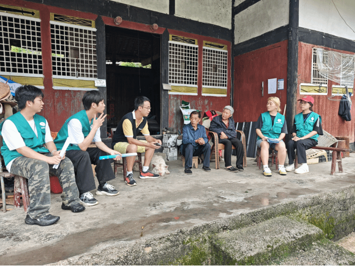 在产业帮扶方面,队员们深入田间地头,走进茶园帮助茶农采摘茶青,随后又前往村茶厂,协助村民包装茶叶,为当地茶叶产业的发展贡献了青春力量。此外,队员们聚焦民生需求,走访了村内的老人和贫困户家庭,张贴防止返贫监测政策“明白纸”,仔细倾听他们的生活状况与实际需求,详细记录困难并及时反馈给村委会,搭建起村民与基层组织沟通的桥梁。这些暖心的帮扶行动,让队员们真切感受到了乡村的温度与振兴的希望,也更加坚定了他们服务乡村、助力振兴的决心。