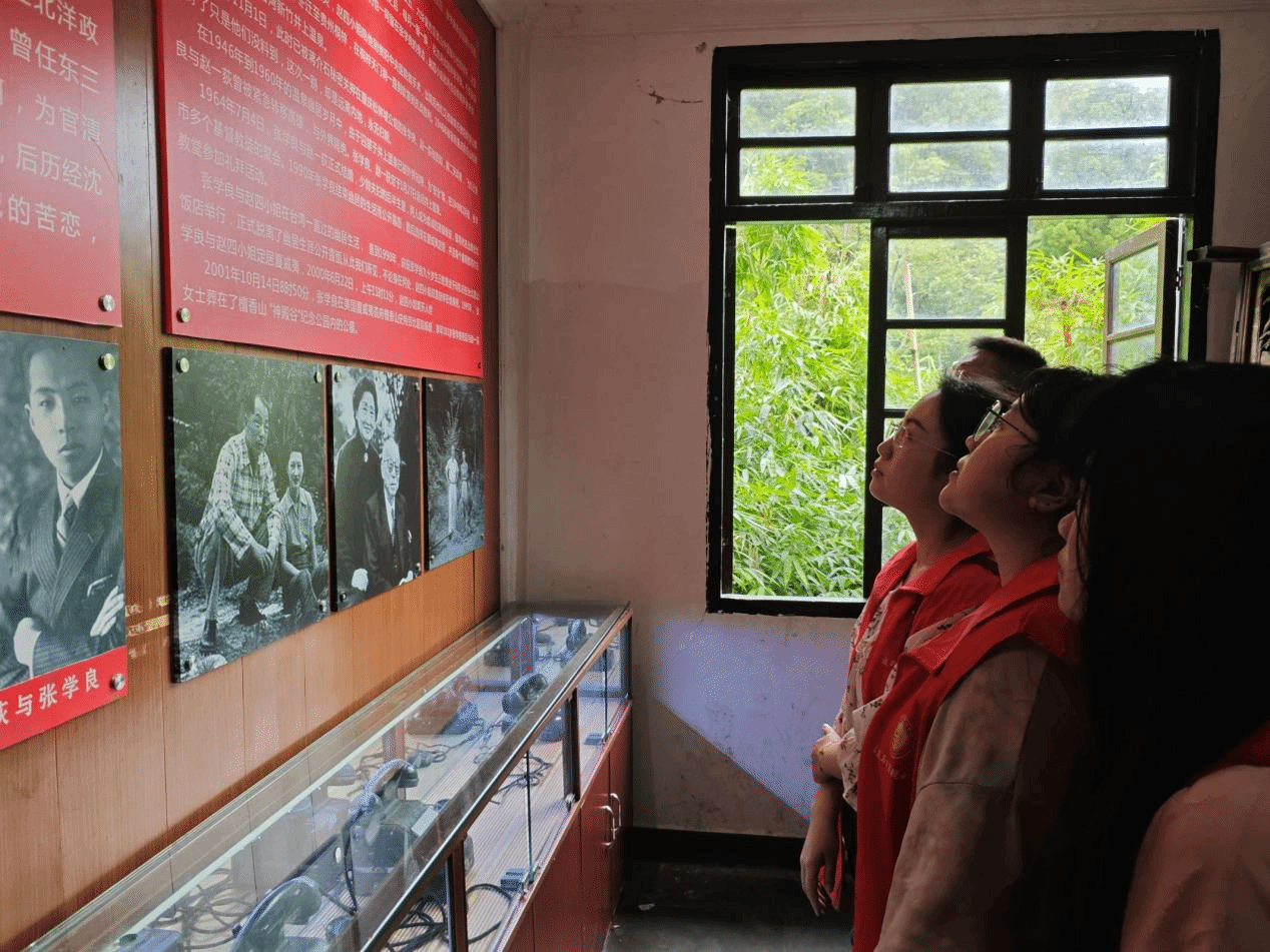 7月21日,团队前往黔灵山探访麒麟洞。队员们深入洞内,仔细观察历史遗迹与标识,结合洞内遗存与图文史料,深入了解张学良、杨虎城两位将军被幽禁时的历史细节及生活状况。参观结束后,队员们对两位将军在艰苦环境中所展现的坚韧与担当深感钦佩。
