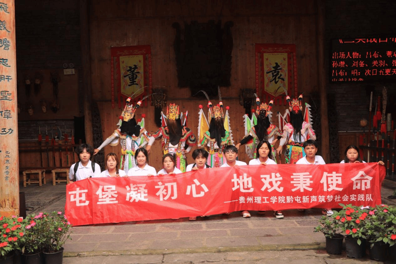 近年来,贵州锚定"奋力打造习近平文化思想生动实践地、加快建设多彩贵州文化强省"目标,深入推进文化事业发展。2025年7月21日至27日,贵州理工学院"黔屯新声筑梦实践队"在指导老师丁玥、慕雨容带领下,以"解码屯堡地戏,传承非遗根脉"为主题,采取线上线下结合方式,赴安顺屯堡开展暑期"三下乡"实践。
