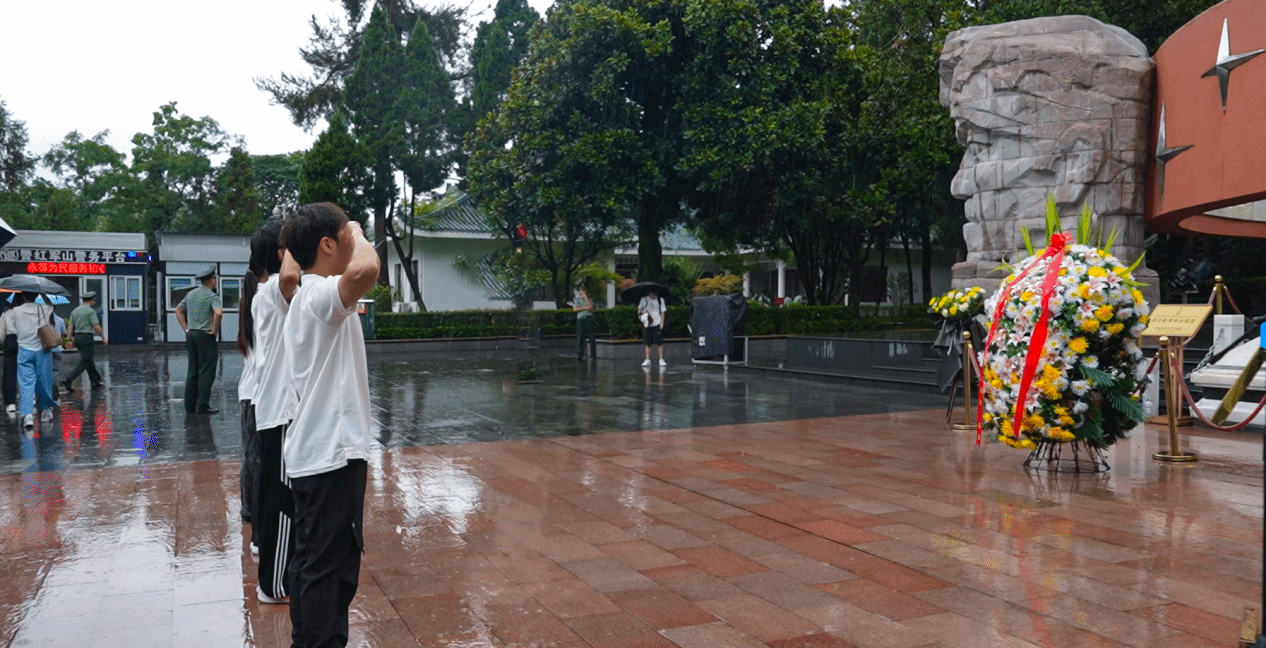 随后,团队探访红军总政治部旧址。这里曾是革命火种的播撒地,毛泽东、张闻天、周恩来等老一辈无产阶级革命家曾在此向红军干部传达遵义会议精神,部署以遵义为中心的根据地建设工作。队员们透过泛黄的文献、斑驳的实物与复原的历史场景,系统了解革命时期宣传与组织工作的艰辛历程,真切感受到先辈们跨越时空的坚定信仰与澎湃奋斗热忱。当日午后,红军山烈士陵园内雨丝纷飞。队员们冒雨伫立纪念碑前,在肃穆氛围中重温入团誓词,铿锵誓言穿透雨幕,让信仰在风雨洗礼中更显纯粹。大家在默哀中深切体悟:今日的安宁祥和,正是无数先烈用热血与生命铸就的精神丰碑。