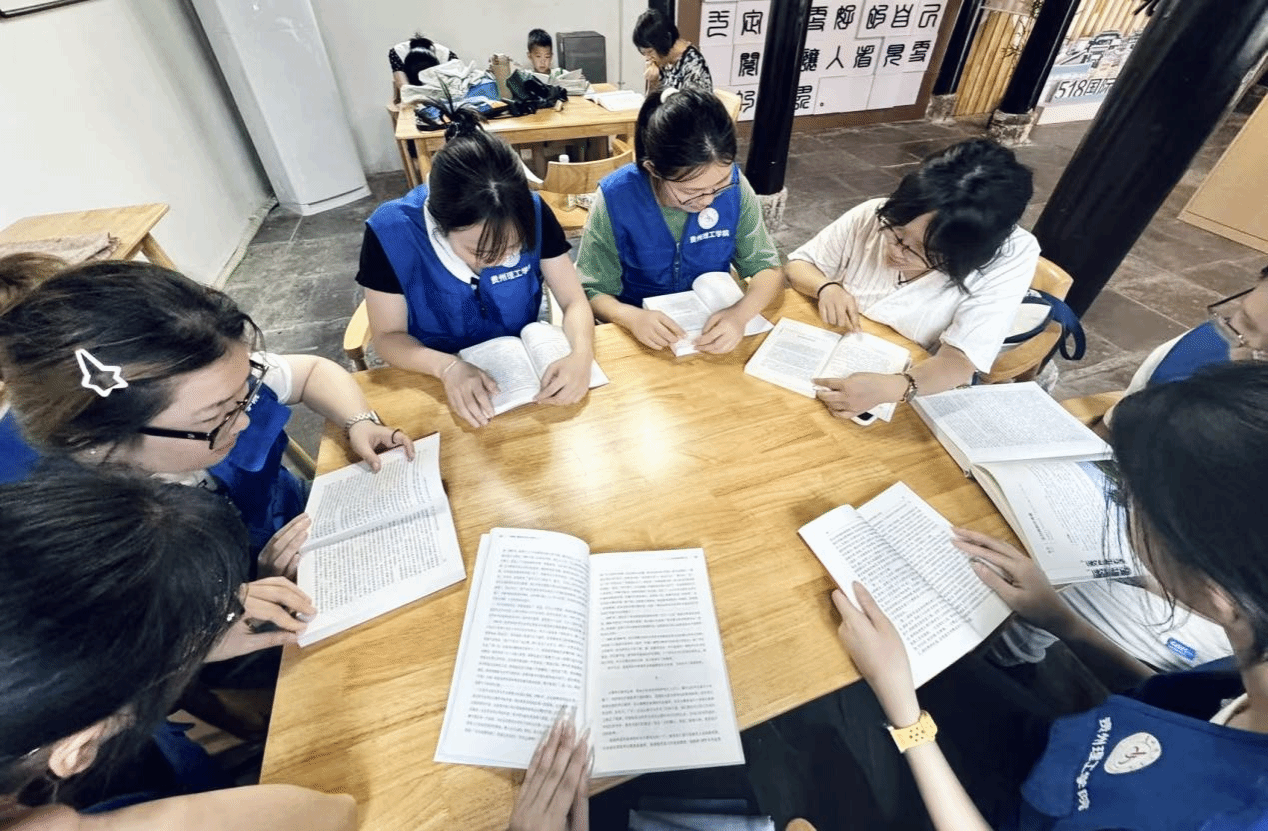 7月20日,实践队前往贵阳达德学校旧址开展红色文化研学。在讲解员引导下,队员们参观了陈列室、教师办公室等旧址,通过历史图片、文献资料和实物展品,真切感悟到学校“智、仁、勇”的校训,以及革命先辈以教育为炬、以热血为泉的家国情怀。随后,实践队在贵阳达德学校支持下开展读书会,重温王若飞在达德学校接受新思想、萌发爱国情怀的历程,深刻感悟其“一切要为人民打算”的初心与担当。