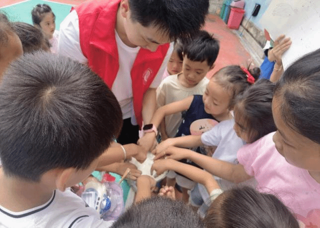 针对暑期学习需求,实践队设立了数学、语文等学科辅导小组,提供精准课业帮扶。队员们耐心细致地讲解知识点,巧妙结合生活实例,将抽象概念具象化,使学习过程生动易懂。随后的“趣味科学”实验环节更是点燃了孩子们的好奇心与探索欲。在队员们的指导下,青少年们安全有序地进行了非牛顿流体制作、白醋与小苏打反应等趣味实验。队员们同步讲解科学原理,引导孩子们观察现象、分享感受,深刻体会科学魅力,有效激发了乡村儿童的科学探索精神。
