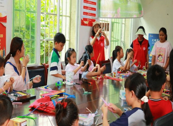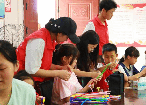在“创意工坊”环节,队员们通过展示扭扭棒的基础技法和多样造型案例,激发了青少年的浓厚兴趣。孩子们全神贯注,指尖翻飞,一件件充满童趣与创造力的扭扭棒手工作品相继诞生,充分展现了乡村儿童的想象力与动手能力。