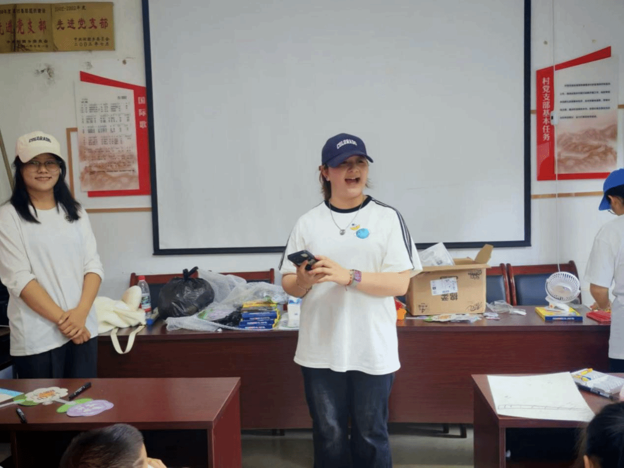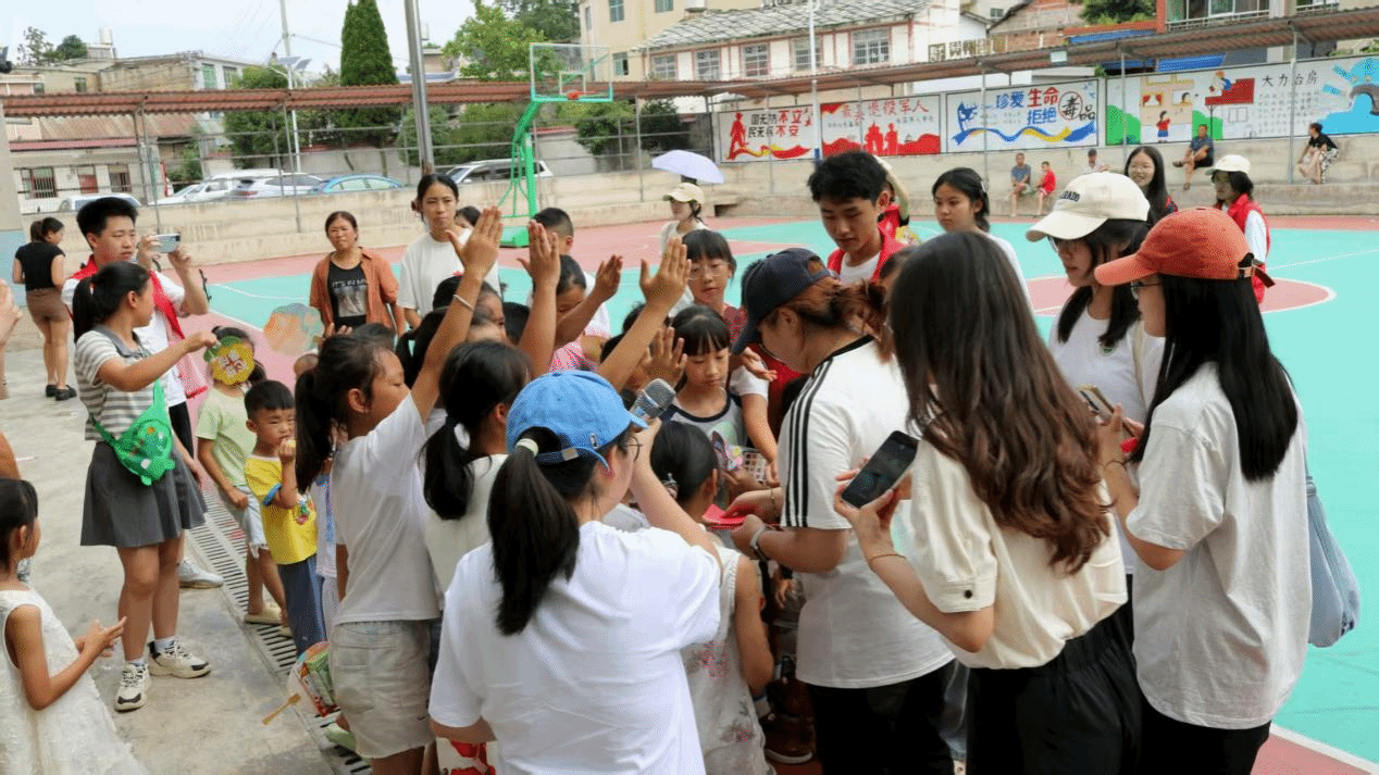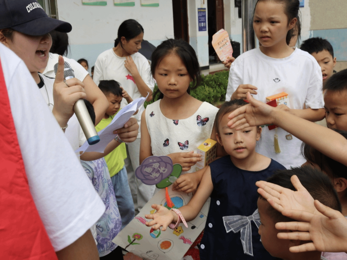 活动伊始,实践团队准备了印有“满是希望”字样的手工扇子赠送给当地儿童。在扇子组装展示环节,队员们向孩子们演示组装过程,新颖的活动形式立即吸引了在场儿童的浓厚兴趣。这一富有创意的开场互动,不仅成功调动了孩子们参与后续科普活动的积极性,也为整场活动营造了轻松愉悦的氛围。