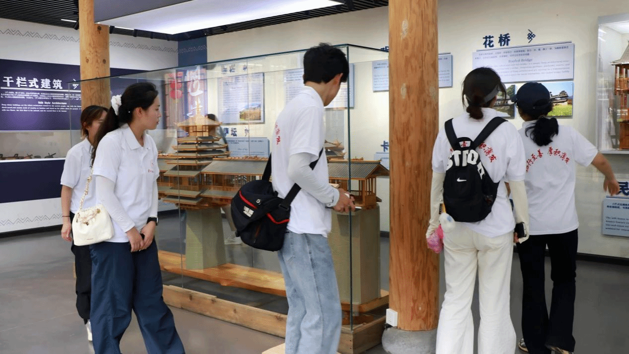 接着,团队前往肇兴侗寨文化展馆参观学习。展馆内,侗族服饰、银饰、农耕工具、建筑模型等珍贵展品有序陈列,生动地展现了侗族悠久的历史、独特的风俗和别具一格的生活方式。队员们结合展品参观,向当地群众和外来游客开展了民族宣讲活动,宣讲党对少数民族文化保护与传承的政策,宣传各民族文化平等发展的法律法规,讲述侗族与其他民族在历史长河中相互交融、共同发展的团结故事,引导当地侗族群众和外来游客深刻认识到各民族文化都是中华文化的重要组成部分,不断铸牢中华民族共同体意识。
