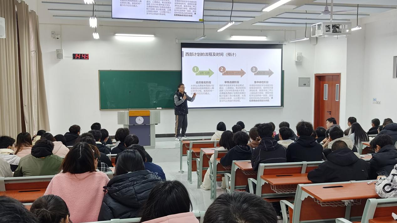 最后,蔺锡柱老师为大家介绍了学院2024届参与西部计划学生的事迹,鼓励大家积极报名,认真准备西部计划考试。