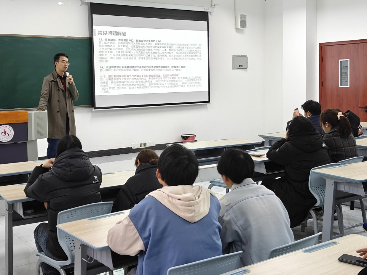 本次宣讲为即将跨入社会的毕业生们拓宽了就业思路,激发了同学们投身西部建设、扎根基层的热情。同时,会议期间对同学们提出的各类问题进行了全面而详尽的解答,为同学们有序、高效地处理毕业相关事宜提供了宝贵的指导和帮助。