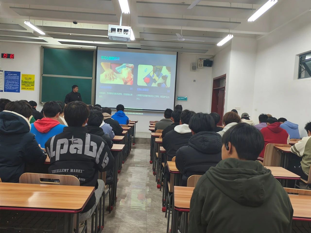 讲座伊始,主讲老师通过触目惊心的溺水案例,分析了溺水事故的特点与危害,给学生们敲响了安全警钟。随后,老师详细讲解了游泳前的准备事项、溺水的急救措施,包括心肺复苏和人工呼吸的正确操作方法,并邀请学生上台模拟演练,增强互动性。