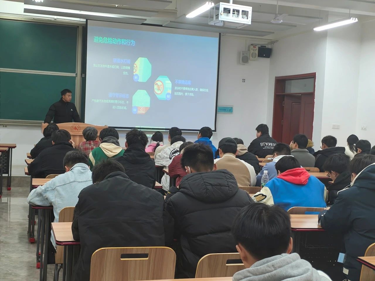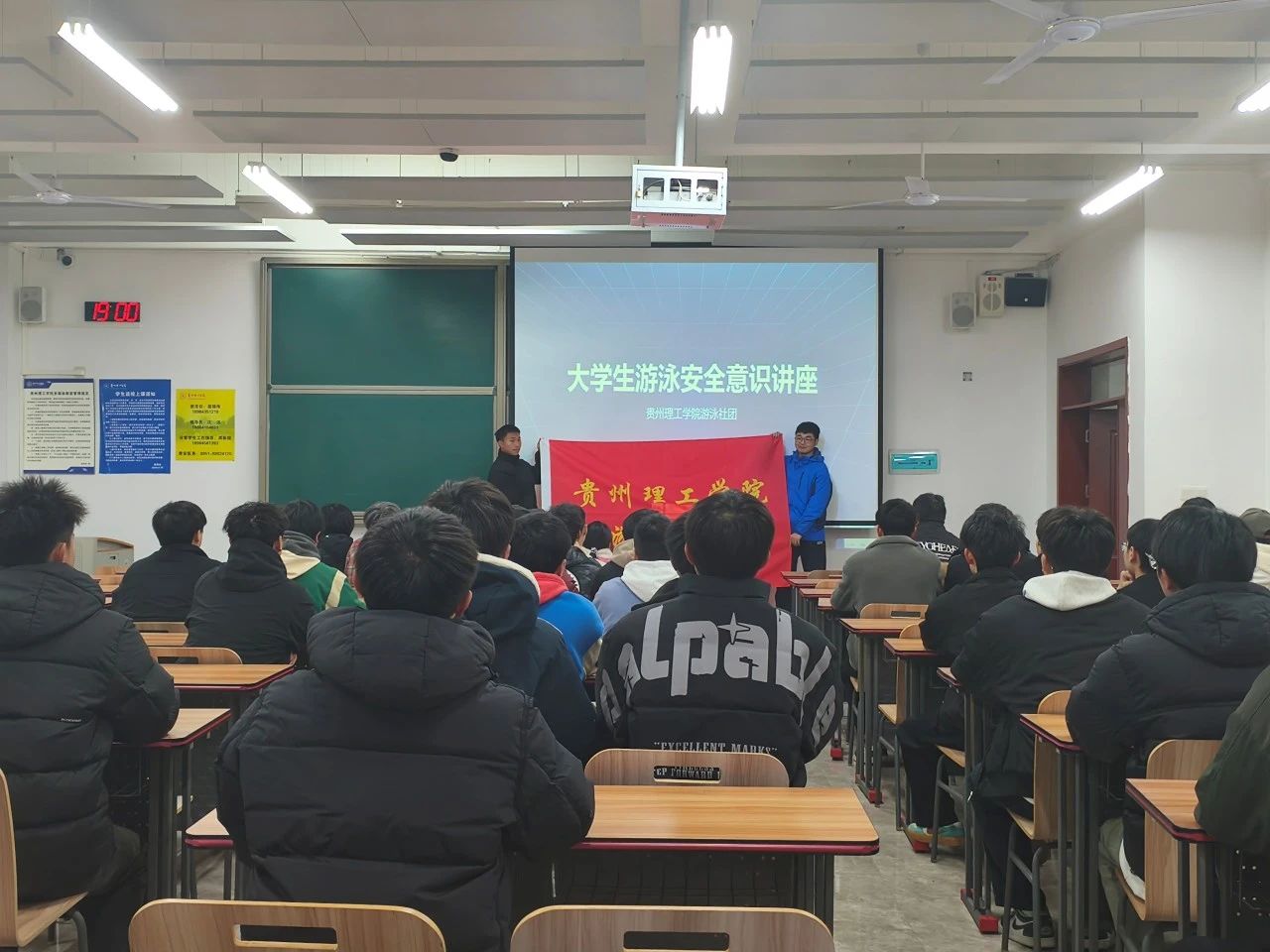 为提升学生的游泳安全意识,切实预防溺水事故发生,2025年3月31日,游泳社团在开物楼1307教室举办了一场游泳安全意识讲座。本次讲座吸引了各年级学生踊跃参与。