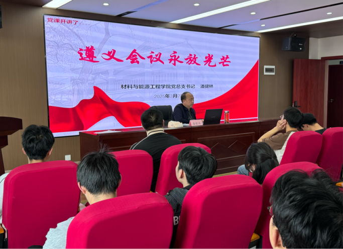 3月27日,材料与能源工程学院材料221、材料222班在毓知楼429会议室开展“遵义会议永放光芒”主题班会,此次班会由学院党总支书记潘健林同志主讲,旨在推动同学们深入学习党史,传承红色基因,厚植爱国情怀,坚定理想信念。