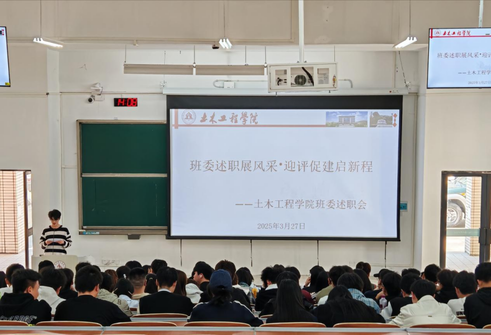 为强化班团组织建设,提升学生干部履职能力,迎接审核评估。3月27日,土木工程学院在开物楼110教室举行2024-2025学年第一学期班委述职评议会。学院党总支副书记杨文斯、学生科副科长及团总支副书记秦丽丽、2024级辅导员熊雪梅、土木工程学院各班班委参加。