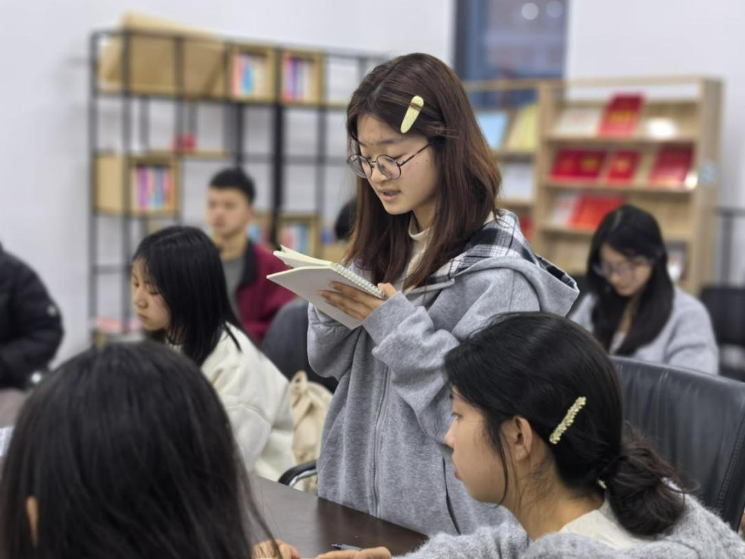 在专题研讨环节,学员们结合自身学习感悟和生活实际,分享心得:“作为新时代青年,要将习近平总书记重要讲话精神内化于心,外化于行,以更饱满的学习热情、更坚定的理想信念、更扎实的实际行动投入专业学习和社会实践。”?
