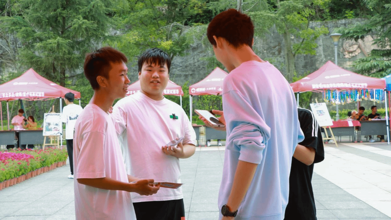 展位有序展风采,热情讲解引新生。61 个社团展位沿时光广场整齐排布,特色海报主题鲜明,展位上的展品琳琅满目——从学术科技类社团的专业模型,到文化艺术类社团的手作成果,再到体育类社团的运动装备,瞬间吸引大批新生驻足。社团成员们热情高涨,主动向前来咨询的新生介绍社团宗旨、活动内容与加入方式,用真诚态度传递社团魅力,让新生在轻松交流中了解不同社团的特色。