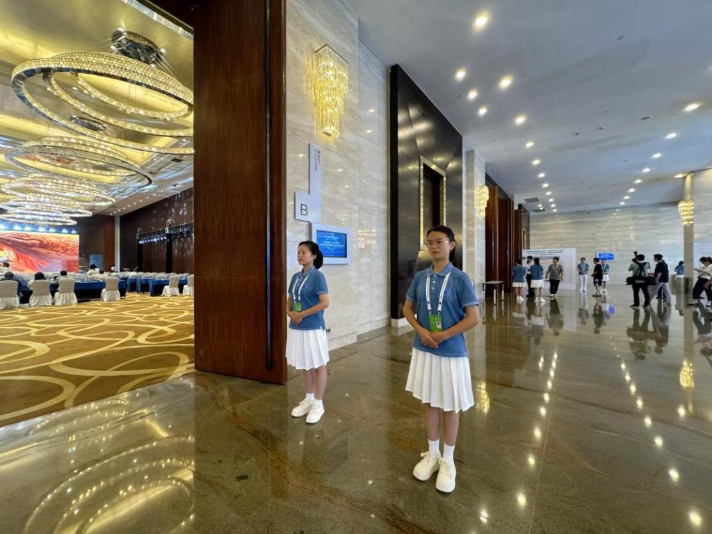 经过前期系统的专业培训,“小青爽”志愿者们迅速投入论坛各项工作中。从主会场的秩序维护到展厅的引导咨询,从嘉宾的热情迎接至手册的有序分发,他们的身影活跃在论坛的每一个角落。无论是晨光初露的清晨,还是星光点点的夜晚,“小青爽”们始终以饱满的热情坚守岗位,用细致高效的服务保障着论坛各项活动的顺畅开展。