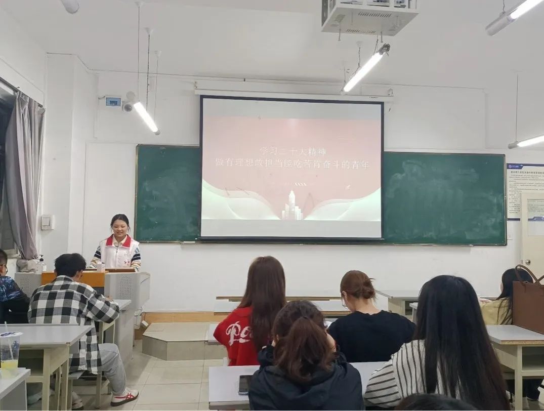 宣讲开始,为激发同学们的积极性,了解同学们对党的二十大精神的学习情况,廖燕娇以几个党的二十大精神应知应会题目对同学们进行提问,学习效果显著。接着,廖燕娇以理想照亮前行的路,做“眼中有光”的新时代好青年;以担当彰显初心使命,做“肩上有责”的新时代好青年;以吃苦锤炼过硬本领,做“手上有招”的新时代好青年;以奋斗书写青春答卷,做“脚下有路”的新时代好青年四个方面展开进行讲解。