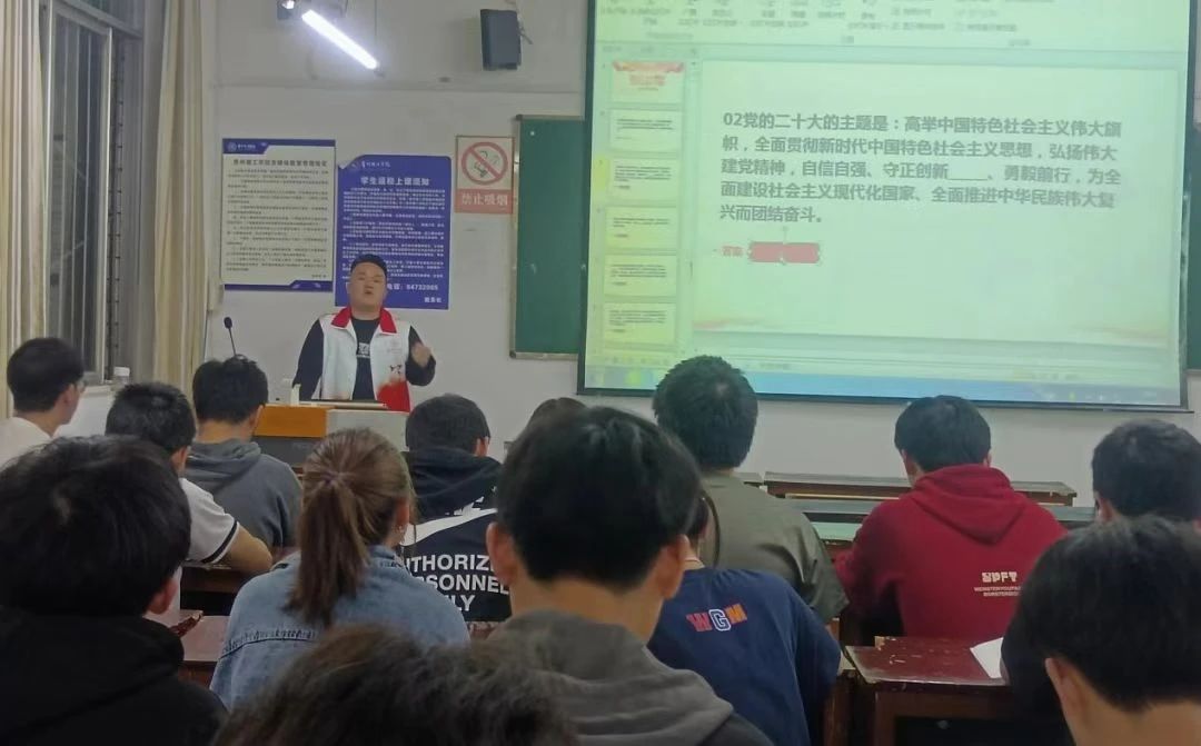 党的二十大是在全党全国各族人民迈上全面建设社会主义现代化国家新征程、向第二个百年奋斗目标进军的关键时刻召开的一次十分重要的大会。习近平总书记指出,学习宣传贯彻党的二十大精神是当前和今后一个时期全党全国的首要政治任务。为深入学习贯彻落实党的二十大精神,深入学习贯彻习近平总书记中国足球彩票青年工作的重要思想,贵州理工学院校团委以各团总支优秀团干部和优秀青年学生为主体组建“党的二十大精神青年宣讲团”深入基层团组织开展宣讲,从青年视角出发,以“青言青语”传递青年使命与青年担当,引导青年学生深入理解党的二十大精神的深刻内涵,将个人成长融入到党和国家事业建设中,以昂扬姿态奋进新征程、建功新时代。