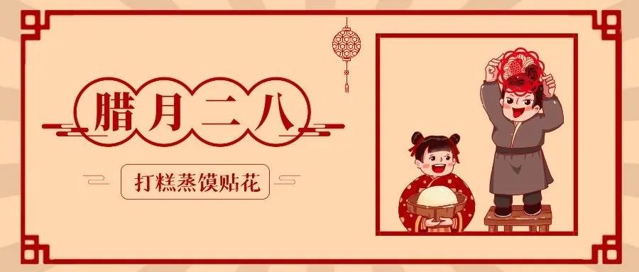 腊月二十八,打糕蒸馍贴花,所谓贴花,就是张贴年画、春联、窗花和各种春节张贴之物。