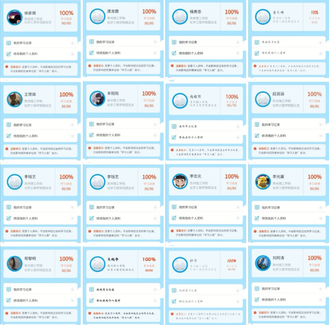 依托“青春黔言”微信公众号,积极开展青年大学习,引导化工学子思想认知,领会重要讲话精神,力争达到学习完成率100%。在动员化工学子也积极投身“西部计划”的同时,化学工程学院团总支开展新生与毕业生团籍转接培训,认真、高效完成智慧团建转接工作,转接率高达100%。