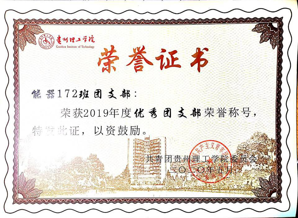 在2020年4月举行的校级优秀团支部竞选中,能器172团支部有幸荣获“2019年优秀团支部荣誉称号”。在此次活动中成员们积极参与,一起收集材料,撰写策划,为参与此次活动共同努力着,充分体现了能器172团支部成员之间团结友爱,互帮互助,共同进退的深厚情谊。
