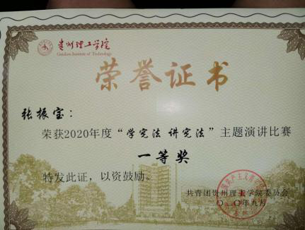 2019年9和11月团支部团员张振宝同学积极参与到学校组织的校园文化艺术类活动中去,如参加“理工演说家”、“学宪法 讲宪法”等系列活动,展现出了团支部成员的激情与活力。