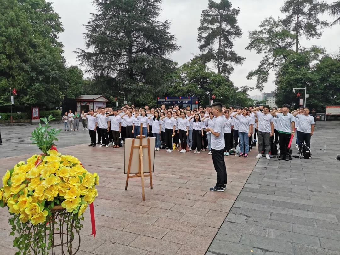 第二站——红军山,来到烈士墓前,在菁英班班长的组织下,学员们一起重温了入团誓词,并为红军烈士们默哀。