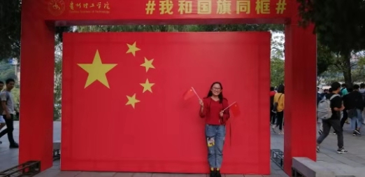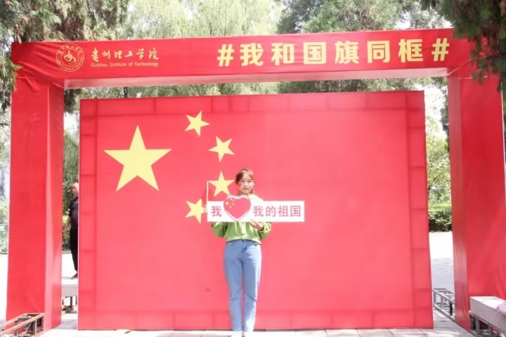 红色是你独有的标志,金色是你带来的光明,因为有你,我们洗去耻辱;因为有你,我们才有现在的幸福!我爱你,亲爱的祖国。