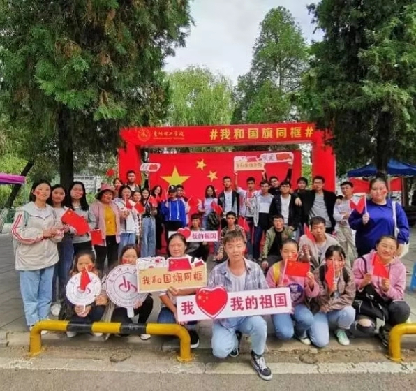 以我火红青春,谱写国旗礼赞,以我生命热血,捍卫国旗尊严,心系国旗,乐于奉献,超越自我,率先垂范。