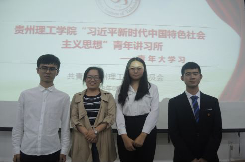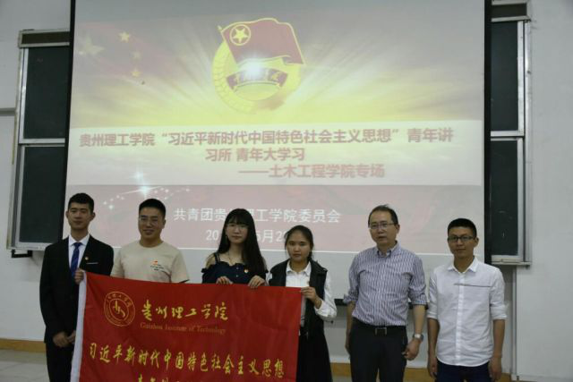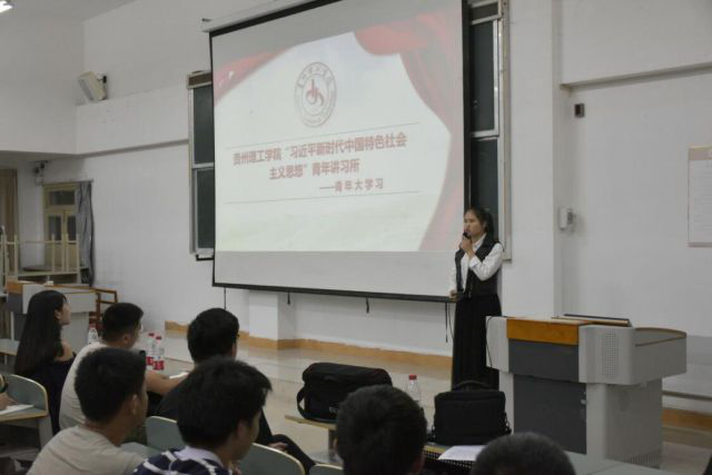 为全面学习贯彻党的十九大精神,在全校掀起学习“习近平新时代中国特色社会主义思想”的热潮,2018年5月,贵州理工学院“习近平新时代中国特色社会主义思想”青年讲习所在各班级开展了青年大学习活动。纪传文、安娜娜等15名成员利用晚自习时间为机械工程学院、土木工程学院、交通工程学院、大数据学院、化工工程学院的17级1000余名学生宣讲了十九大精神并分享个人成长经历,部分学院党政负责人、辅导员班主任老师参与本次活动。