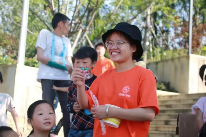 在游戏正式开始前,支教队的老师先带领前来参加活动的孩子们跳了“兔子舞”活跃孩子们的身心,为后面的活动展开做预热!