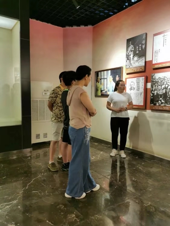 2019年7月28日,实践小组按计划在周逸群陈列馆参加讲解培训,馆内讲解员黄雨珠、蒋雪、万冰冰分别带队对同学们进行讲解培训。华岚老师一直随行从旁点评,令同学们受益匪浅。在同学们实践过程中,恰逢当地警察局组织到周逸群纪念馆开展活动,同学们抓住机会为警官们进行了讲解,并从中得到了锻炼和提高。