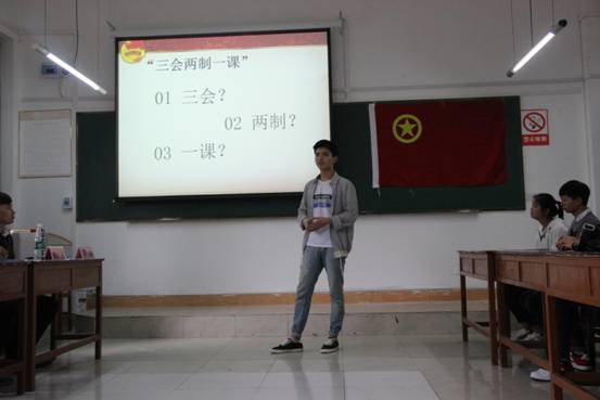 2017年4月27日中午,贵州理工学院资源与环境工程学院环境152班团支部组织召开“学习总书记讲话 做合格共青团员”专题组织生活会,校团委李朋副书记、资源与环境工程学院团总支副书记张双菊以普通团员的身份参加组织生活会,会议由班级团支部书记王学欢主持。