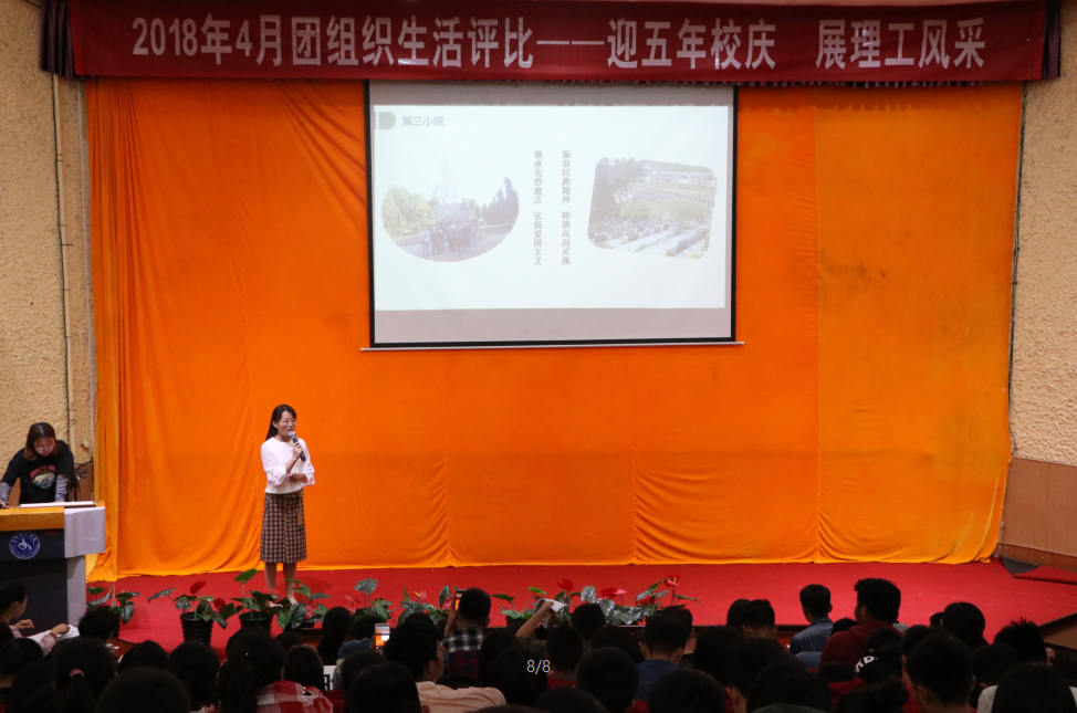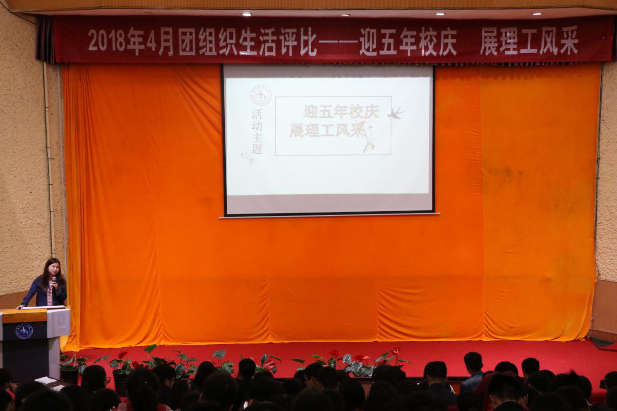 2018年5月2日晚,以“迎五年校庆,展理工风采” 为主题的贵州理工学院4月优秀团组织生活评比活动在逸夫小报告厅隆重举行。