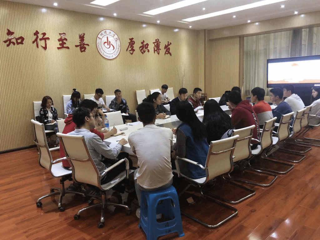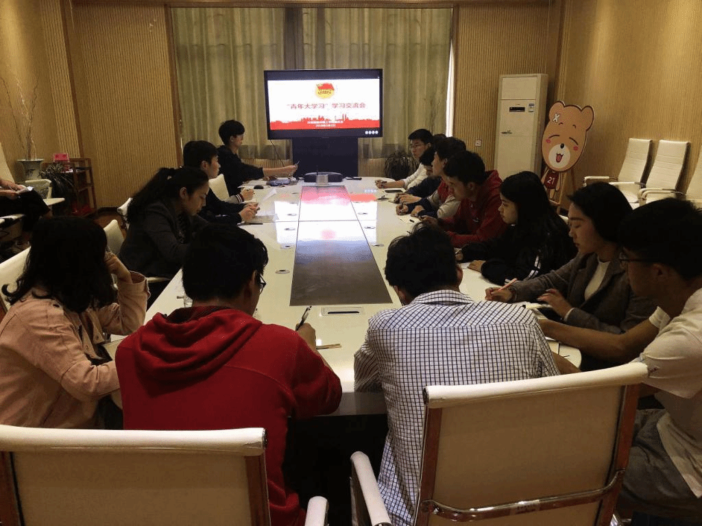 2018年5月2日中午,“青年大学习”主题学习会在学工楼二楼会议室召开,校团委书记李朋老师、田蕾老师、邓雪梅老师、校团委主要学生干部及14个学院团总支学生副书记参加会议。