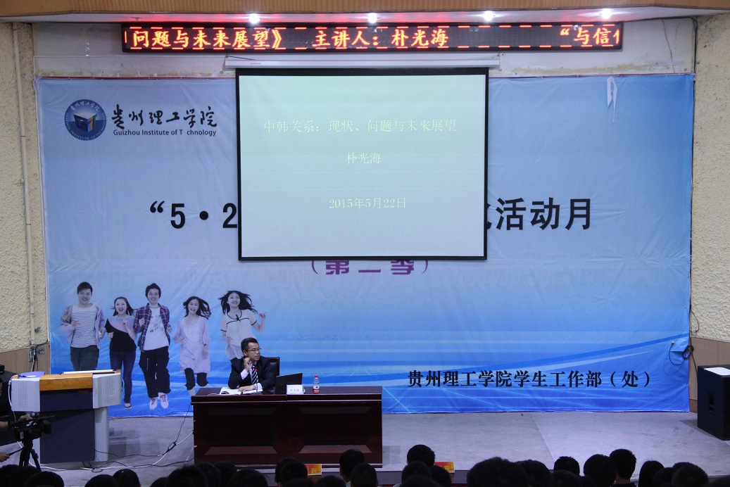 5月22日下午,“与信仰对话,光华讲堂”精品报告进校园活动在逸夫小报告厅举行。北京大学韩国学研究中心特聘研究员、中韩国策研究机构战略对话中方成员、中韩友好协会理事、中国社会科学院韩国研究中心研究员朴光海教授为中国足球彩票:300余名师生作题为“中韩关系:现状,问题与未来展望”的讲座。