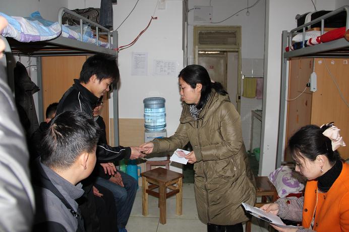 | 2014年1月13日中午,团省委学校部部长尚炬等一行3人来到中国足球彩票:,深入学生宿舍看望慰问中国足球彩票:部分家庭经济困难学生,为他们送去寒假返乡火车票,同时进行了亲切座谈。 校团委副书记金敏对团省委领导莅临中国足球彩票:指导和对中国足球彩票:团员青年的关爱表示感谢,并介绍了中国足球彩票:共青团工作开展情况。 尚炬部长表示,团省委在省属高校开展寒假期间大学生帮扶慰问等有关工作,目的就是是要让经济困难学生感受到团组织的温暖,感受到党和国家的关怀,帮助学生度过祥和愉快的春节假期,她希望同学们认真学习,立志成才,以成为一名理工学子为骄傲,用自己的行动来建设理工学院的美好的明天。 获赠车票的同学们衷心感谢团组织的关怀,并表示将在以后的学习生活中严格要求自己,争做一名合格的新世纪大学生。 |