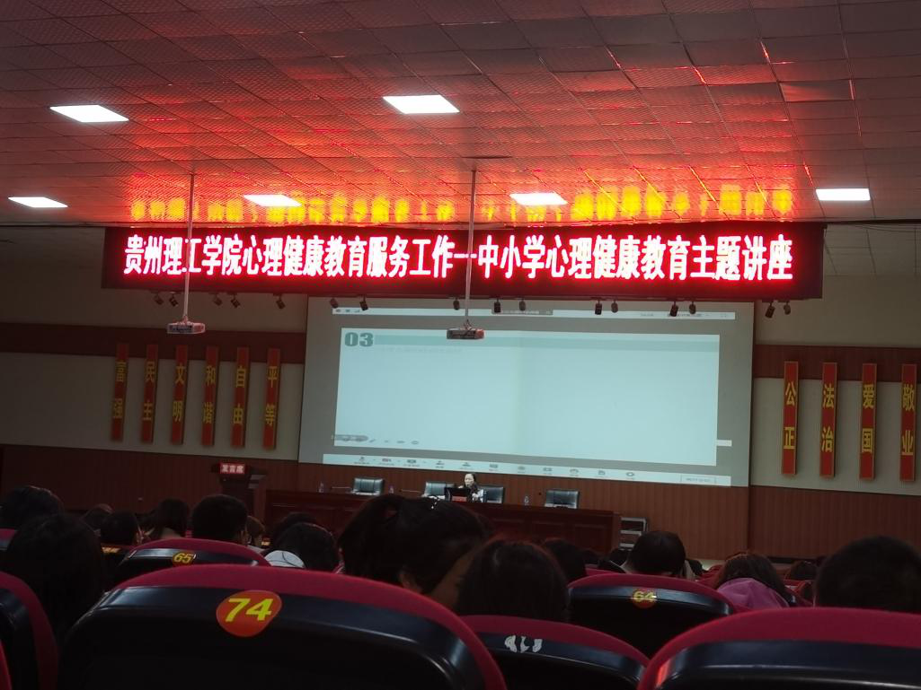 开展示范引领与社会服务工作,服务中小学心理健康教育。2021年4月起,心理中心组织全体专职教师赴长顺县、三穗县、剑河县及贵阳市第十九中学开展中小学心理健康教育服务工作,开展教师专题讲座及学生主题团体辅导,发挥中心社会服务功能,提升中心社会影响力。