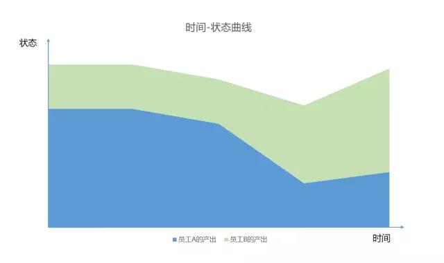 横轴代表我们能够利用的时间,纵轴代表在每一个时间段内,我们的工作状态。这条「时间-状态曲线」跟坐标轴围成的面积,就是我们最终的工作产出。