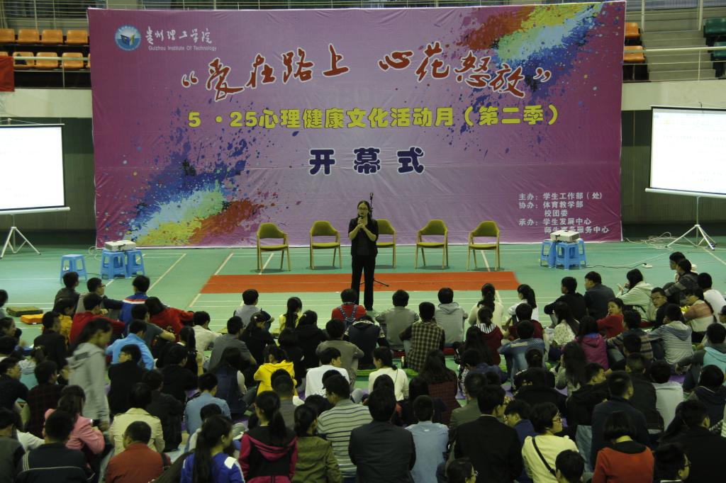 4月29日晚七点,贵州理工学院体育馆内一片通明,第二季“5.25心理健康文化月”开幕式暨团体心理咨询活动正式开展。开幕式由贵州理工学院党委副书记宋广强书记主持,贵州理工学院党委副书记、校长龙奋杰,中国心理学会评定的第二批中国心理专家、贵州省心理学会会长、贵州省心理健康教育协会会长王洪礼教授出席开幕式。