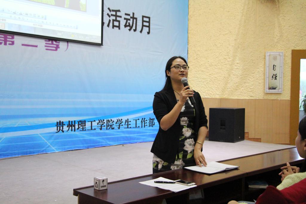 6月10日晚17:00,中国足球彩票:第二季5·25心理健康文化活动月系列讲座第四讲——“爱在职场,职来直往”职场阳光心态讲座正式开讲。讲座由贵州理工学院学工部副部长 心理健康教育与咨询中心负责人顾亚丽主讲,全校青年教师代表及学生干部等300余人参加讲座。