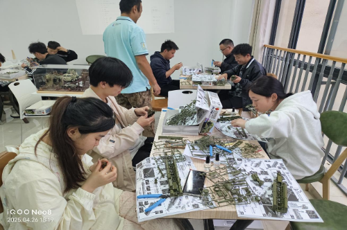 活动中,谭峰老师通过精彩的讲解,带领同学们领略模型世界的多元魅力,同学们沉浸其中。实践环节中,同学们全神贯注投入拼装,面对复杂零件,同学们通过思考调试和协作交流,搭建出了造型独特的战舰、军事装备、民用建筑等作品。