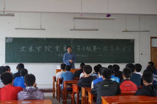 4月12日上午,机关第七党支部学生党员付光耀在一教211教室主持召开土木工程学院入党积极分子党章学习小组第一次交流学习。校党委组织部副部长卢文雄、机关第七党支部杨文斯以及学生党员沈安富、卯昌月、刘松林、单涛参加了本次交流学习会。