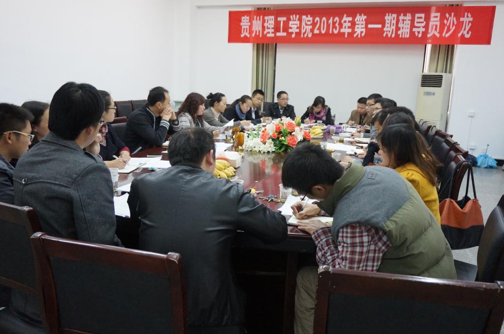 2013年11月11日,贵州理工学院2013年第一期“辅导员成长之路”的主题沙龙在学工部二楼会议室举行。