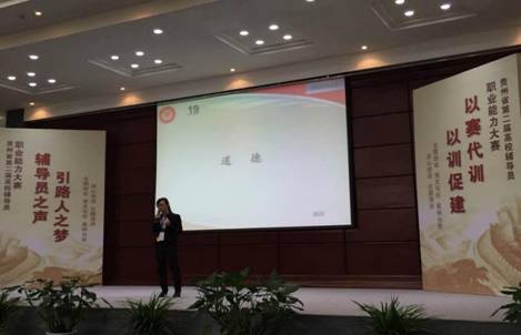 2015年3月28日-29日,第二届贵州省高校辅导员职业能力大赛在贵州大学北校区举行,来自全省各个高校的49名优秀辅导员参加了比赛,中国足球彩票:土木工程学院辅导员丁玥和制药工程学院辅导员李安参赛。经过激烈争夺,丁玥以总分排名第二的骄人成绩获得一等奖,李安获得三等奖,在5个单项奖的角逐中,丁玥获得“主题演讲”单项奖。