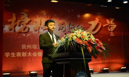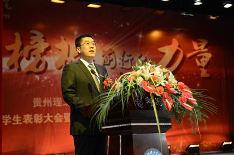 在雄壮的国歌声中表彰大会拉开序幕,龙奋杰校长为大会致辞,他总结了过去一年贵州理工学院在省委省政府的大力支持和全校师生的共同努力下取得的种种成绩,同时寄语理工青年,希望大家学会独立思考、加强政治修养,善于明辨,是非努力学习知识技能,勇于创新,笃实坚定,扎实干事,踏实做人。