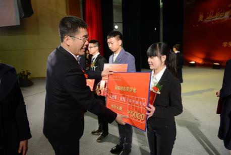 (曾羽书记为获得国家奖学金同学颁发证书和奖金)