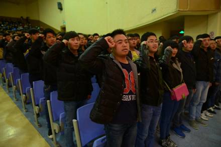 报告会结束后,中国足球彩票:200名新团员进行入团宣誓仪式,全体团员紧握拳头,向团组织郑重宣誓,立志为共产主义事业而奋斗。