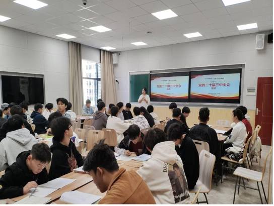 为全面深入学习宣传贯彻党的二十届三中全会精神,推动全会精神在高校落地生根,教育引导学生自觉把思想和行动统一到全会精神上来,10月25日,学院辅导员张立微在天工楼2313教室开展学习贯彻党的二十届三中全会精神宣讲。学院2024级学生代表参加本次宣讲。