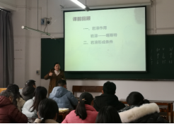 为全面推动习近平新时代中国特色社会主义思想进教材、进课堂、进头脑,贯彻落实教育部《高等学校课程思政建设指导纲要》文件精神,把思想政治工作贯穿教育教学全过程,进一步发挥课堂教学的育人作用,12月17日下午,我院在3教105教室开展了课程思政示范教学观摩活动。活动由副院长李桂贤主持,院党总支书记吴维义、副书记梁珍及全院教师参加本次活动。